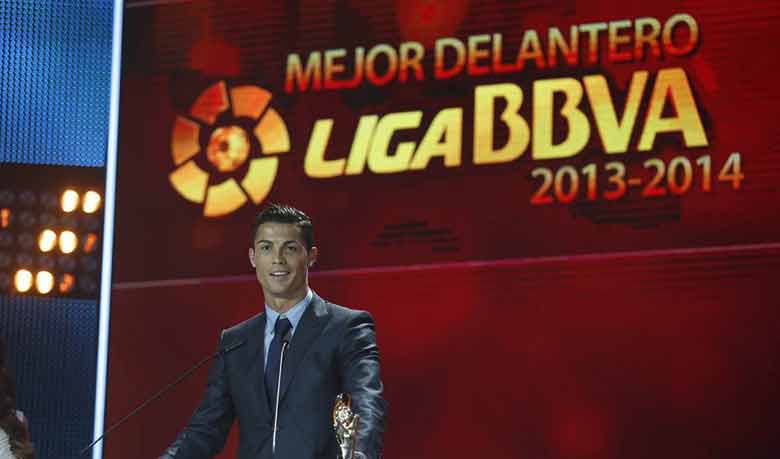 ক্রিস্টিয়ানো রোনালদো। বিশ্বসেরা এক ফুটবলারের নাম। চলতি মৌসুমে যিনি উড়ছেন। স্প্যানিশ লা লিগা, উয়েফা চ্যাম্পিয়নস লিগে একের পর এক গোল করে চলছেন। গেল মৌসুমেও তিনি ছিলেন দুর্দান্ত। লা লিগার সর্বোচ্চ গোলদাতা ছিলেন। আর সেটার পুরস্কার পেলেন সোমবার রাতে। স্প্যানিশ লা লিগার গেল মৌসুমের (২০১৩-১৪) সেরা খেলোয়াড়, সেরা গোল ও সেরা ফরোয়ার্ডের পুরস্কার জিতেছেন তিনি। এক গালা অনুষ্ঠানের মধ্য দিয়ে এই পুরস্কার তুলে দেয়া হয়।