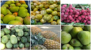 এ সব ফলের মধ্যে রয়েছে- আম, জাম, আনারস, কাঁঠাল, নাশপাতি, আমড়া, শরিফা, লটকন, বাঙ্গি, কামরাঙা, পেঁপে, বেদানা, অরবরই, করমচা, আমলকি, সাগরকলা ইত্যাদি। এছাড়া খেঁজুর, আপেল, মালটা, আনার, নাশপাতি, আঙুরসহ বিভিন্ন বিদেশি ফল।