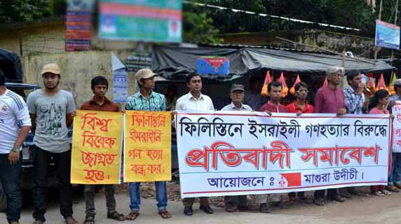 ফিলিস্তিনে ইসরায়েলি বাহিনীর গণহত্যার প্রতিবাদে মাগুরায় প্রতিবাদ সমাবেশ করেছে বাংলাদেশ উদীচী শিল্পী গোষ্ঠী মাগুরা জেলা সংসদ।রোববার সকাল সাড়ে ১০টায় মাগুরা শহরের চৌরঙ্গীর মোড়ে এ কর্মসূচি পালিত হয়।