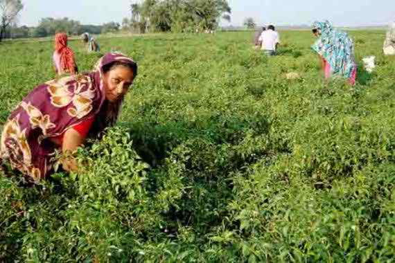 সরেজমিন দেখা গেছে, ক্ষেত থেকে পুরুষদের পাশাপাশি নারী ও শিশুরা মরিচ তুলছে আনন্দে।
