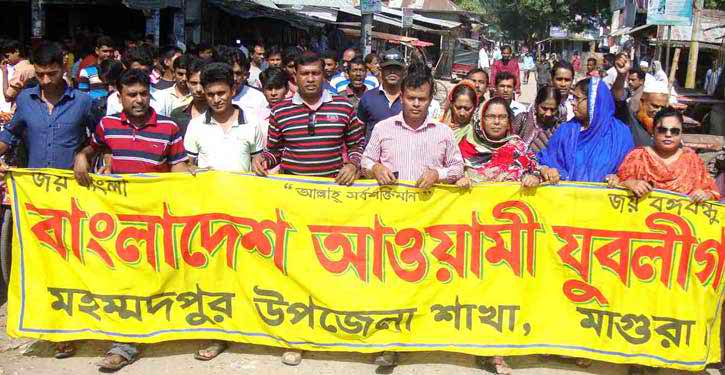 যুবলীগের কেন্দ্রীয় সভাপতি ওমর ফারুকের বাসার সামনে ককটেল বিস্ফোরনের ঘটনায় মাগুরার মহম্মদপুরে বিক্ষোভ মিছিল ও সমাবেশ করেছে যুবলীগ।সোমবার দুপুরে শহীদ মিনার থেকে শুরু করে বিক্ষোভ মিছিলটি উপজেলা সদরের প্রধান সড়কগুলো প্রদক্ষিন শেষে শহীদ রওশন মাকেট চত্বরে এসে শেষ হয়।