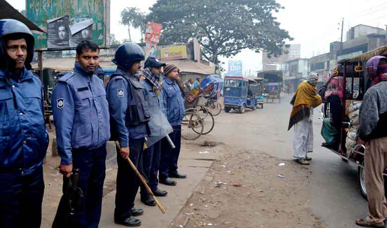 হরতালে নাশকতা ঠেকাতে শহরের ভায়না, চৌরঙ্গী মোড় ও খুলনা-ঢাকা মহাসড়কের বিভিন্ন স্থানে অতিরিক্ত পুলিশ মোতায়েন আছে।