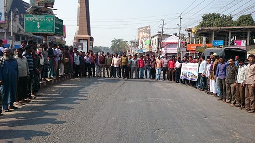 এ সময় এলাকাবাসী ব্যানার নিয়ে মহাসড়কের উভয় পাশে অবস্থান গ্রহণ করে। কিছুক্ষনের জন্য যান চলাচল বন্ধ থাকে।
