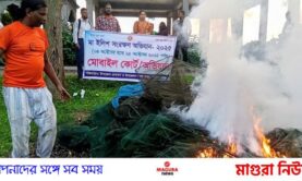 - শ্রীপুরে প্রায় দুই লক্ষাধিক টাকার চায়না দোয়ারী ও কারেন্ট জাল জব্দ, আগুনে পুড়িয়ে ধ্বংস