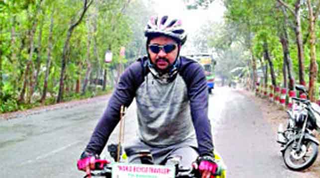 বাংলাদেশসহ বিশ্বের অন্তত ২০০টি দেশে পরিবেশ সুরক্ষার সবুজ বার্তা পৌঁছে দিতে চান ভারতের হরিয়ানা রাজ্যের ভুনা গ্রামের আয়ুর্বেদিক চিকিৎসক রাজ পাণ্ডে (৩৭)। সাত মাসে ভারত ও শ্রীলঙ্কার বিভিন্ন এলাকা ঘুরে শুক্রবার যশোরের বেনাপোল সীমান্তপথে বাংলাদেশে এসেছেন তিনি। একই দিন রাতে মাগুরায় অবস্থান করে শনিবার সকালে বাইসাইকেলে যাত্রা করেন ঢাকার উদ্দেশে।