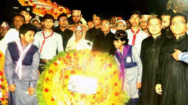 রাত ১২টা ১ মিনিটে শহীদ বেদীতে পুস্পস্তবক অর্পণ করেন জেলা প্রশাসন, জেলা পুলিশ, জেলা জজশিপ, আওয়ামী লীগ, বিএনপি, জাতীয় পার্টিসহ বিভিন্ন রাজনৈতিক, সামাজিক ও সাংস্কৃতিক সংগঠনের নেতৃবৃন্দ। হাজারো মানুষের ফুলেল শ্রদ্ধাঞ্জলিতে শহীদ বেদী কানায় কানায় পূর্ণ হয়ে ওঠে।