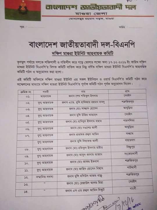 বিএনপি’র দক্ষিন মাগুরা ইউনিট আহবায়ক কমিটি ঘোষনাPosted on December 18, 2016December 18, 2016 by Magura News মাগুরানিউজ.কমঃ বিশেষ প্রতিবেদক- এক বিজ্ঞপ্তিতে মাগুরা জেলা বিএনপির দক্ষিন মাগুরা ইউনিটের আহবায়ক কমিটি গঠন ও অনুমোদন। মাগুরা জেলা বিএনপির আহবায়ক সৈয়দ আলী করিম কমিটির বিষয়টি নিশ্চিত করেছেন। পোষ্ট শেয়ার করুনFacebookTwitterLinkedInEmailPrintLike this:Like Loading...