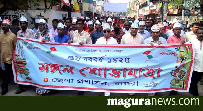 শনিবার (১৪ এপ্রিল) সকালে গ্রামবাংলার ঐতিহ্যকে ধারণ করে মঙ্গল শোভাযাত্রার আয়োজন করে মাগুরা জেলা প্রশাসন। প্রতিবারের মতো এবারও মঙ্গল শোভাযাত্রায় হাজির হয়েছেন হাজারো মানুষ। বাংলার চিরায়ত সাজে নববর্ষ বরণ করছে সবাই।