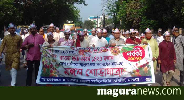 ‘মুছে যাক গ্লানি, ঘুচে যাক জরা, অগ্নিসানে শূচি হোক ধরা’। সকালে গানে গানে মঙ্গল শোভাযাত্রার মধ্য দিয়ে শুরু হয় মাগুরা জেলা আইনজীবী সমিতির বাংলা নববর্ষ বরণের আয়োজন। মঙ্গল শোভাযাত্রাটি শহরের প্রধান প্রধান সড়ক প্রদক্ষিণ করে আইনজীবী সমিতি চত্বরে শেষ হয়।