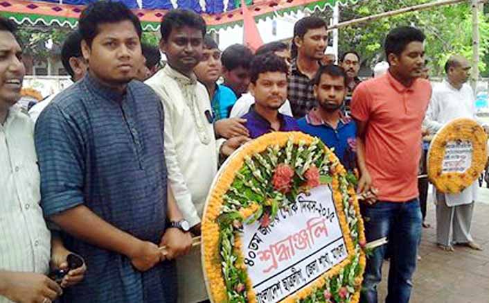 ১৫ আগষ্ট স্বাধীন বাংলাদেশের মহান স্থপতি, জাতির জনক বঙ্গবন্ধু শেখ মুজিবুর রহমানের ৪০তম শাহাদাৎ বার্ষিকী ও জাতীয় শোক দিবসে মাগুরা জেলা ছাত্রলীগের উদ্যোগে বঙ্গবন্ধুর প্রতিকৃতিতে শ্রদ্ধাঞ্জলি নিবেদন করা হয়।