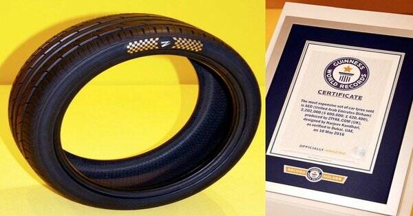 সম্প্রতি ভারতে মোটরগাড়ির দুটি টায়ার বিক্রি হয়েছে ৪ কোটি ১০ লাখ রুপিতে। বিশ্বের সবচেয়ে মূল্যবান টায়ার হিসেবে গিনেস ওয়ার্ল্ড বুক অব রেকর্ডে জায়গা করে নিয়েছে এই টায়ার দুটি। পিটিআই জানায়, সংযুক্ত আরব আমিরাতের দুবাই শহরে বাণিজ্য মেলায় মোটরগাড়ির দুটি টায়ার বিক্রি হয়েছে।