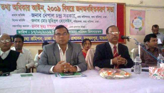 মাগুরার মহম্মদপুর উপজেলা পরিষদ মিলনায়তনে আজ (১৭ ফেব্রুয়ারি) দুপুরে “তথ্য অধিকার আইন,২০০৯ বিষয়ে জনঅবহিতকরণ সভা অনুষ্ঠিত হয়েছে। প্রধান অতিথি ছিলেন তথ্য কমিশনের পরিচালক জনাব নেপাল চন্দ্র সরকার।