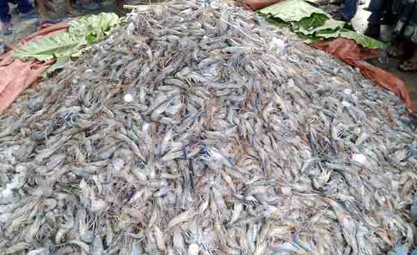 চিংড়ি নেবেন চিংড়ি…. মধুমতির চিংড়ি। হাকডাকে বাজার গরম। মাগুরা বাজারে আজ বিক্রির জন্য আনা হয় মধুমতি নদীর চিংড়ি মাছ। বড় ৫০০ ছোট ৪০০ টাকা দরে দাম হাকান বিক্রেতা। তবে দামের তোয়াক্কা না করেই ক্রেতাদের মাছ কিনতে দেখা যায়। মধুমতির চিংড়ি বলে কথা!