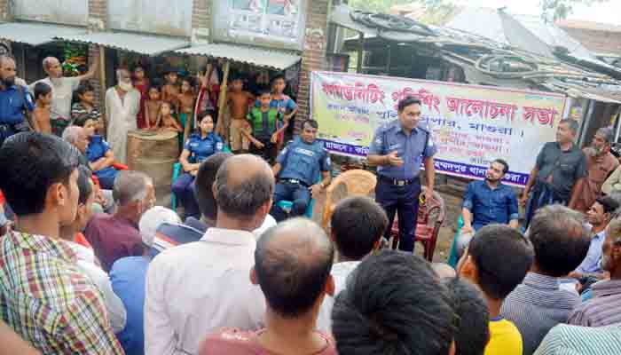 পুলিশ সুপার একেএম এহসান উল্লাহ্ নির্দেশে জঙ্গী তৎপরতা রোধে সকল জনসাধারনের মাঝে জনসচেতনতা বৃদ্ধি করার লক্ষে কমিউনিটি পুলিশ এ আলোচনাসভার আয়োজন করে।