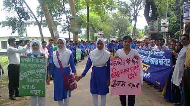 রোববার (১৪ আগস্ট) সকালে কলেজের সামনে মহম্মদপুর-মাগুরা সড়কের দুই পাশে প্রায় আধা কিলোমিটার এলাকাজুড়ে এ কর্মসূচি পালিত হয়।এসময় কলেজের ভারপ্রাপ্ত অধ্যক্ষ ওসমান আলী বলেন, দাবি আদায় না হওয়া পর্যন্ত আমাদের কর্মসূচি অব্যাহত থাকবে।