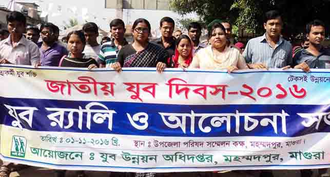 মাগুরার মহম্মদপুরে মঙ্গলবার যুব উন্নয়ন অধিদপ্তরের আয়োজনে “আত্মকর্মী যুব শক্তি, টেকশই উন্নয়নের মূল ভিত্তি” শ্লোগানকে সামনে রেখে জাতীয় যুব দিবস-২০১৬ পালিত হয়েছে।