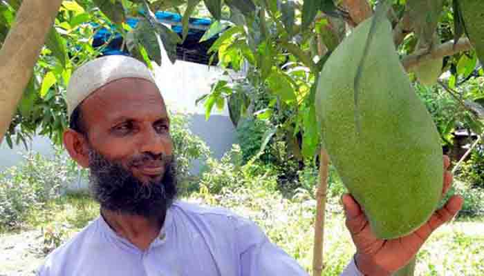সেই ডাল থেকে কলম তৈরি করা গাছে বিশালাকৃতির ১৫টি আম শোভা পাচ্ছে। যার প্রতিটির ওজন প্রায় ৪ কেজি করে।
