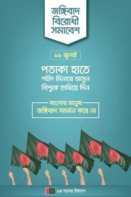 ১২ জুলাই থেকে ২১ জুলাই পর্যন্ত দেশের সব ইউনিয়ন, উপজেলা ও জেলায় সাংবাদিক, কবি-সাহিত্যিকসহ সবাইকে নিয়ে সন্ত্রাসবিরোধী কমিটি গঠনের নির্দেশ দেন দলের মুখপাত্র।