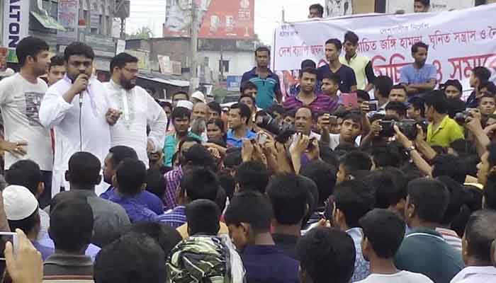 বিকাল সাড়ে ৪টায় শহরের জামরুলতলা থেকে বিক্ষোভ মিছিলটি বের হয়ে সারা শহর প্রদক্ষিণ করে। পরে ভায়নার মোড় স্বাধীনতা স্কয়ারে অনুষ্ঠিত সমাবেশে বক্তব্য রাখেন যুব নেতা আশরাফুজ্জামান হিসাম, এ্যাড. মইনুল হোসেন পলাশ, ইউপি চেয়ারম্যান আবদুল হাই, রফিকুল ইসলাম, শেখ রাসেল শিশু কিশোর ক্রিড়া চক্রের সাধারন সম্পাদক মীর রাশেদুল ইসলাম সুমন, নাজমুল হাসান জেনটেল, জেলা ছাত্রলীগের সাধারণ সম্পাদক মীর মেহেদি হাসান রুবেলসহ আরো অনেকে।