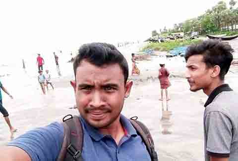 সংগ্রহ করা ছবিতে বন্ধু নেওয়াজকে নিয়ে পটুয়াখালীর কুয়াকাটা সমুদ্রসৈকতে গোসল করতে নামার আগে নিজের মুঠোফোনে তোলা সেলফি।