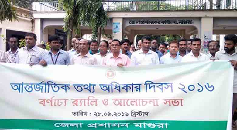 আন্তর্জাতিক তথ্য অধিকার দিবস উপলক্ষে মাগুরায় আজ বুধবার সকালে বর্ণাঢ্য র্যালি ও আলোচনা সভা অনুষ্ঠিত হয়েছে।