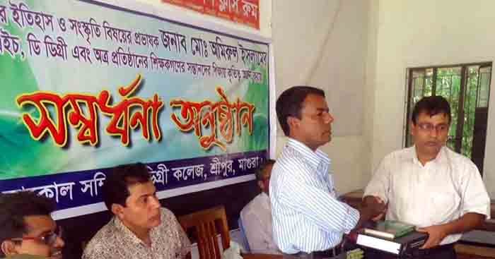 আজ দুপুরে কলেজ মিলনায়তনে অধ্যক্ষ মুন্সি মোখলেসুর রহমানের সভাপতিত্বে আয়োজিত অনুষ্ঠানে বক্তব্য রাখেন উপাধ্যক্ষ খান ফজলুর রহমান, জামিউল কদর, কুদ্দুস মল্লিক ও সংবর্ধিত শিক্ষক আমিরুল ইসলাম।