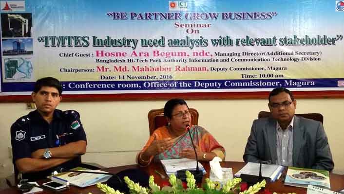 ”BE PARTNER GROW BUSINESS” শিরোনামে ”IT/ITES Industry need analysis with relevant stakeholder” শীর্ষক সেমিনারে মাগুরার জেলা প্রশাসক মুহ. মাহবুবর রহমানের সভাপতিত্বে প্রধান অতিথি ছিলেন বাংলাদেশ হাইটেক পার্ক কতৃপক্ষের ব্যবস্থাপনা পরিচালক (অতিরিক্ত সচিব) হোসনে আরা বেগম।