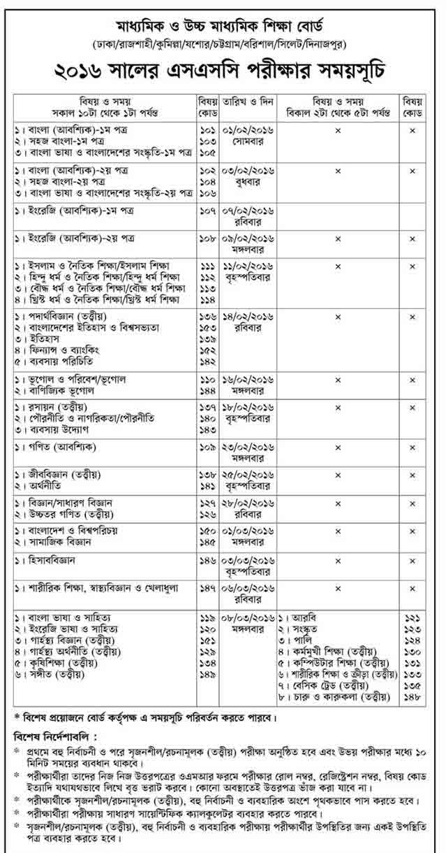 এসএসসি পরীক্ষার রুটিন সংগ্রহে রাখুন