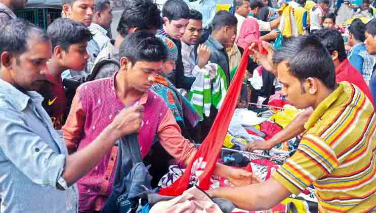 শীত বাড়ার সঙ্গে সঙ্গে দোকানিরা শীত পোশাকের পসরা সাজিয়ে বসেছে। ফুটপাতও এখন শীতের পোশাকের দখলে। ক্রেতাও প্রচুর। ছুটির দিনে রাস্তায় ও দোকানে শীতের কাপড় কেনার এমনই ধুম পড়ে গেছে।