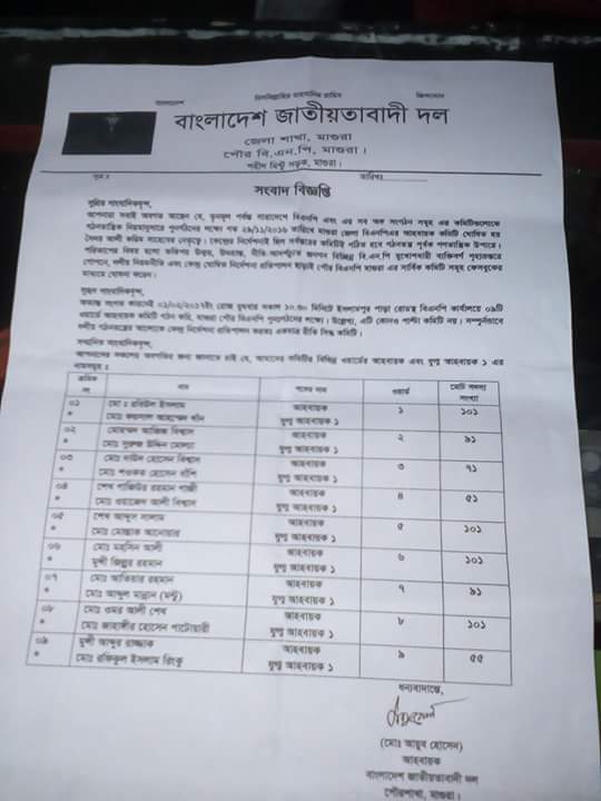 মাগুরায় বিএনপিতে উত্তাপ দেখা দিয়েছে। সংবাদ সম্মেলন করে মাগুরা পৌরসভার ৯ টি ওয়ার্ডের পাল্টা কমিটি ঘোষনা করেছে জেলা বিএনপি’র প্রথম যুগ্ম আহবায়ক সৈয়দ মোকাদ্দেস আলীর অনুসারীরা।