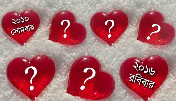 ওয়েব ডেস্ক: ২০১০ থেকে ২০১৬। ৭ বছরে একটা প্রেম সপ্তাহের ৭টা দিন, প্রতি দিনে ‘ভ্যালেন্টাইন ডে’। ২০১০ সালের ১৪ ফেব্রুয়ারি, ‘ভ্যালেন্টাইন ডে’ ছিল সোমবার। ২০১৬ তে এসে ‘ভ্যালেন্টাইন ডে’ এবার রবিবারে। এর মাঝে গোটা একটা সপ্তাহে ‘ভ্যালেন্টাইন ডে’ পূর্ণ করল তাঁর ঘূণাবর্ত।