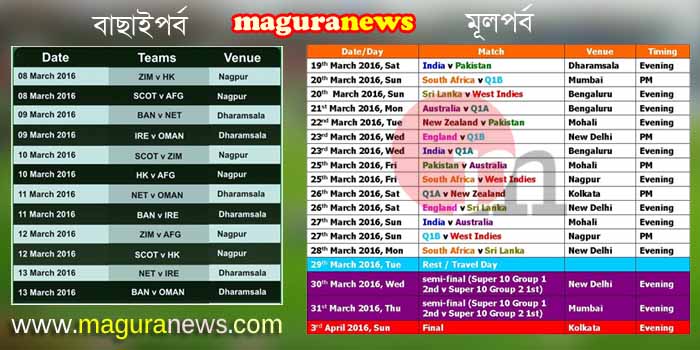 ১১ মার্চ – নেদারল্যান্ডস বনাম ওমান (বিকেল ৩টে) ধর্মশালা; বাংলাদেশ বনাম আয়ারল্যান্ড (সন্ধ্যা ৭টা ৩০ মিনিট) ধর্মশালা শনিবার,
