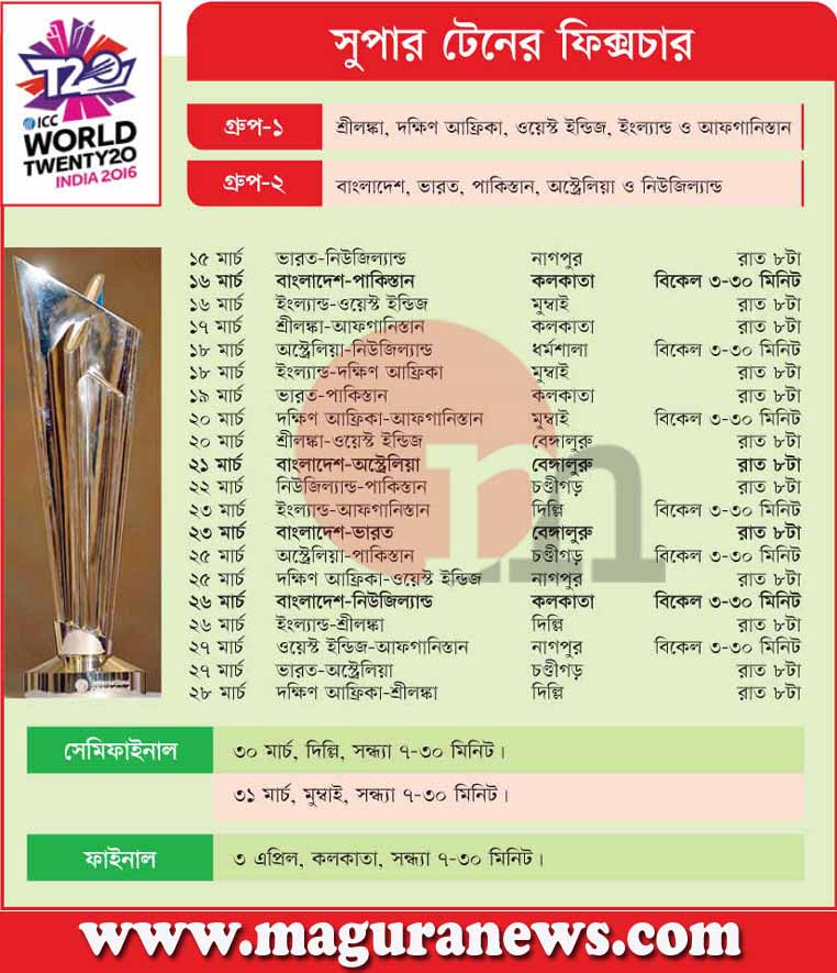 বাংলাদেশের বিশ্বকাপ সুপার টেন ফিকশ্চার:
