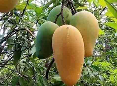 বাজারে বিক্রি হচ্ছে বিভিন্ন ধরনের ফল। আমে রঙ ধরতে শুরু করেছে।