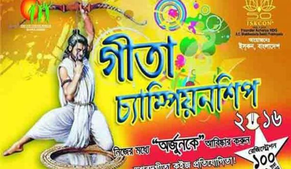 নিজেদের মধ্যে ‘‘অর্জুনকে’’ আবিস্কার করুন’ এই ম্লোগানকে সামনে রেখে আন্তর্জাতিক কৃষ্ণ ভাবনামৃত সংঘ (ইসকন) বাংলাদেশের আয়োজনে দেশ ব্যাপী গীতা চ্যাম্পিয়নশিপ-২০১৬ এর ভগবদগীতা কুইজ প্রতিযোগীতার রেজিষ্ট্রেশন কর্মসুচী শেষ হয়েছে।