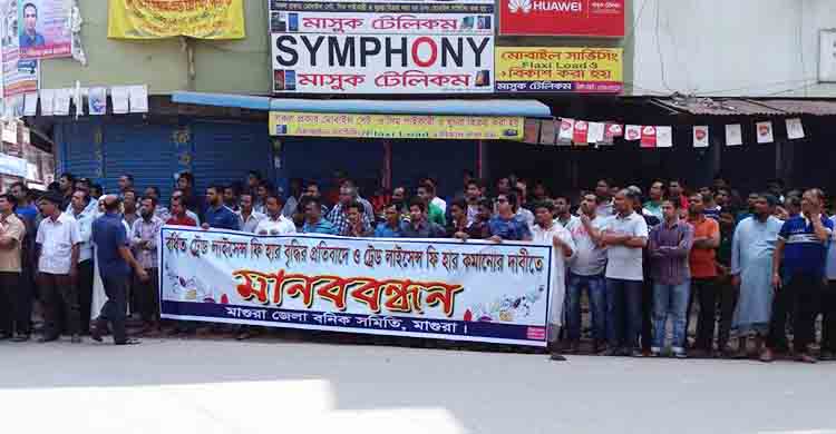 মাগুরা শহরে দোকান বন্ধ রেখে ব্যবসায়ীরা সকালে ১ ঘন্টা রাস্তায় অবস্থান করেছে। ট্রেড লাইসেন্স ফি বৃদ্ধির প্রতিবাদে শহরের ব্যবসায়ীরা বুধবার সকালে ১ ঘন্টা ব্যবসা প্রতিষ্ঠান বন্ধ করে মানববন্ধন, বিক্ষোভ সমাবেশ এবং পৌর মেয়র, জেলা প্রশাসক ও পুলিশ সুপারের কার্য়ালয়ে স্মারকলিপি দিয়েছে।