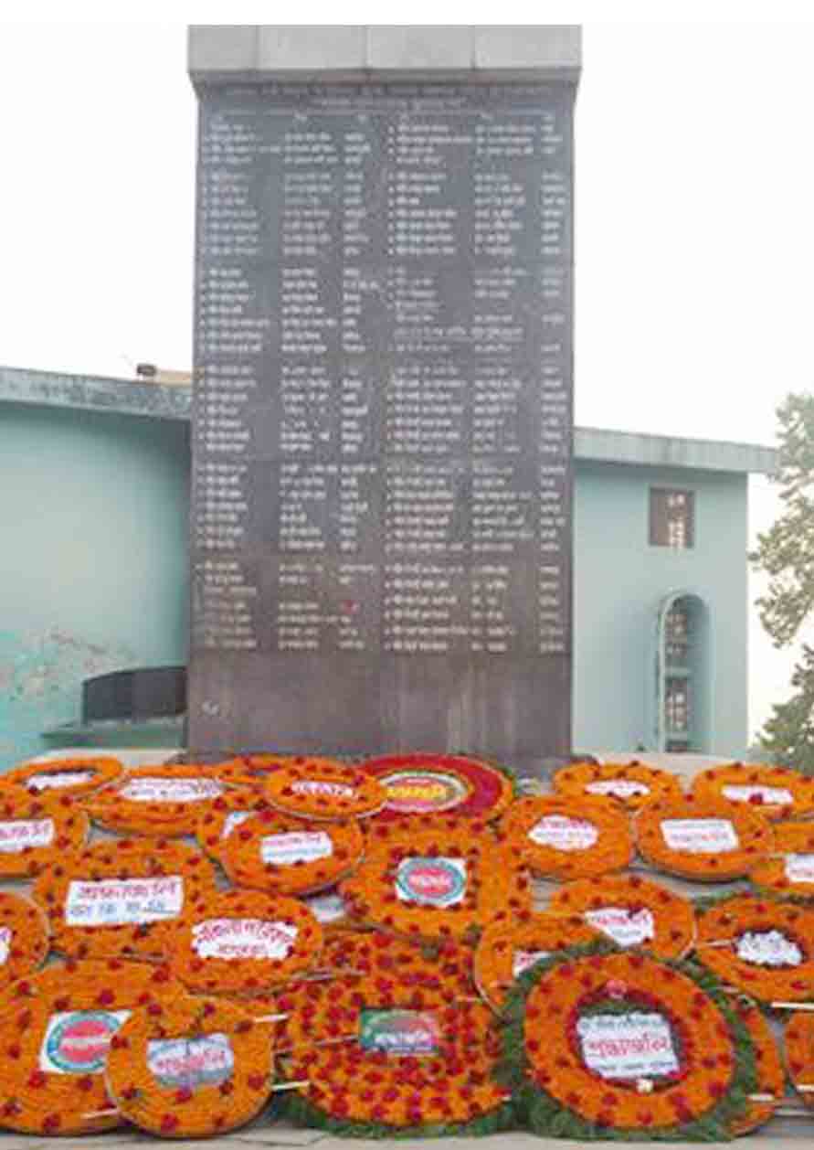 এসময় মুক্তিযোদ্ধা সংসদ, সরকারি বে-সরকারি প্রতিষ্ঠান, বিভিন্ন রাজনৈতিক, সামাজিক-সাংস্কৃতিক সংগঠনের পক্ষ থেকে শহরের নোমানী ময়দানে শহীদ স্মৃতি স্তম্ভে পুস্পার্ঘ অর্পণ করা হয়। পরে সেখানে শহীদের আত্মার মাগফিরাত কামনায় দোয়া মাহফিল অনুষ্ঠিত হয়।