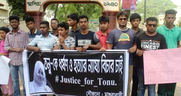 রবিবার মাগুরায় সাংস্কৃতিক কর্মী তনু হত্যাকাণ্ডের প্রতিবাদ এবং বিচারের দাবিতে মানববন্ধন অনুষ্ঠিত হয়েছে।