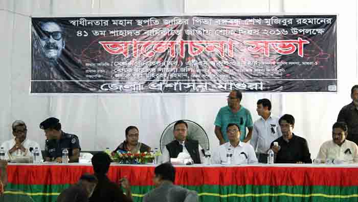বাঙালী জাতি আজ গভীর শোক ও শ্রদ্ধায় তার শ্রেষ্ঠ সন্তানকে স্মরণ করছে। মাগুরার আছাদুজ্জামান মিলনায়তনে জাতীয় শোক দিবসের আলোচনা সভা অনুষ্ঠিত হয়েছে। আলোচনা সভায় প্রধান অতিথি ছিলেন মাগুরা-১ আসনের সংসদ সদস্য মেজর জেনারেল (অব:) এটিএম আব্দুল ওয়াহহাব।