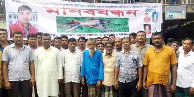 সংবাদ সম্মেলনে নিহতের স্ত্রী স্বপ্না ইসলাম ও ইছাখাদা বণিক সমিতির সভাপতি কাজী ফিরোজ জানান, গত ১০ সেপ্টেম্বর বাড়ি থেকে বেরিয়ে নিখোঁজ হন হৃদয়পুর গ্রামের আকমল হোসেনের ছেলে দর্জি শ্রমিক হুমায়ুন কবীর। ২০ সেপ্টেম্বর পার্শ্ববর্তী ঝিনাইদহ জেলার শৈলকুপার হাট ফাজিলপুর মাঠে তার ক্ষতবিক্ষত ও গলিত লাশ পাওয়া যায়। এলাকার চিহ্নিত একটি চক্র পূর্ব বিরোধের জের ধরে পরিকল্পিতভাবে হুমায়ুনকে অপহরণ করে হত্যা করেছে বলে তাঁরা দাবি করেন। যে বিষয়ে শৈলকুপা থানায় মামলা করা হয়েছে। আয়োজকরা দোষীদের শাস্তি দাবি করেন।