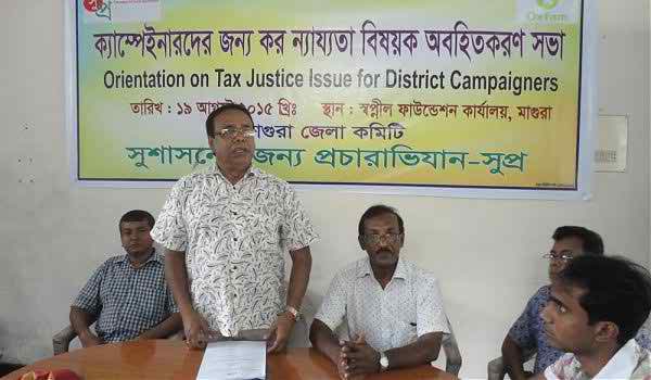 সুশাসনের জন্য প্রচারাভিযান (সুপ্র) মাগুরা জেলা শাখার উদ্যোগে আজ সকালে স্থানীয় স্বপ্নীল ফাউন্ডেশন কার্যালয়ে ক্যাম্পেইনারদের জন্য কর নায্যতা বিষয়ক এক মতবিনিয় সভা অনুষ্ঠিত হয়।