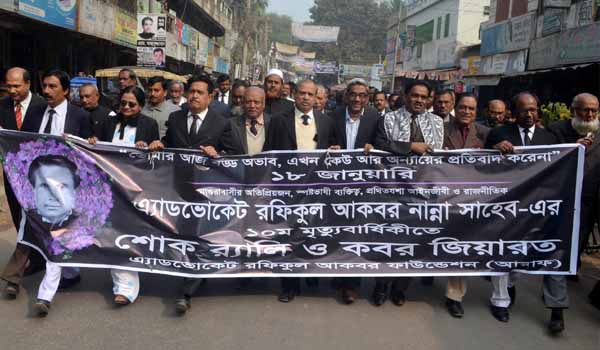 মাগুরা জেলা আইনজীবি সমিতির দীর্ঘদিনের সভাপতি- সাধারণ সম্পাদক ও মাগুরা পৌর আওয়ামী লীগের দীর্ঘদিনের সভাপতি ও বিশিষ্ট সমাজসেবক মরহুম এ্যাড. রফিকুল আকবর নান্না সাহেবের ১০ মৃত্যুবার্ষিকী আজ দিনব্যাপী মাগুরায় নানা আয়োজনের মধ্য দিয়ে পালন করা হয়েছে।