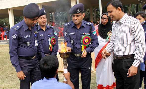 উৎসবমুখর পরিবেশে মশাল প্রজ্বলনের মাধ্যমে আয়োজনের শুভসূচনা করেন মাগুরার পুলিশ সুপার জনাব একেএম এহসানউল্লাহ।