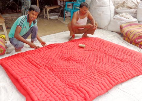 পুরনো সিন্থেটিক কাপড়, হোসিয়ারি কারখানার বাতিল কাপড় যন্ত্রের সাহায্যে পেষাই করা হয়। তা থেকে তৈরি ‘তুলো’ দিয়ে বানানো হয় লেপের আকারে বালাপোষ।