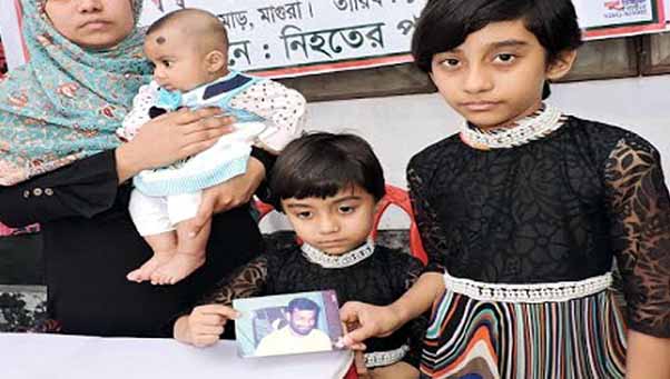 মাগুরায় নিরু হত্যা মামলার আসামিদের দ্রুত গ্রেপ্তার ও বিচার দাবিতে সংবাদ সম্মেলন করেছে নিরুর পরিবার। নিহত নিরুর স্ত্রী আঁখি আক্তার তাঁর তিন মাসের শিশু কন্যাসহ তিন সন্তান নিয়ে আজ এ সংবাদ সম্মেলন করেন।