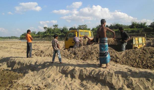অভিযোগে জানা যায়, ফরিদপুর জেলা প্রশাসন থেকে ইজারা নিয়ে মাগুরার অংশের বালি কেটে সাফ করছে একটি মহল।