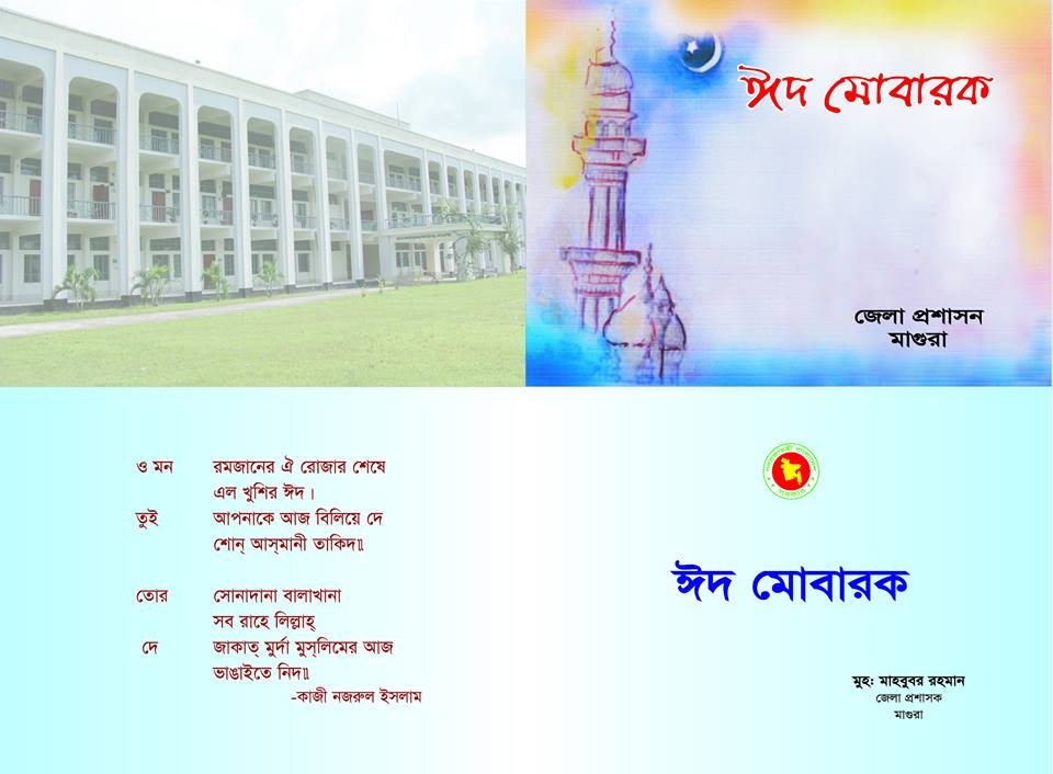 পবিত্র ঈদুল ফিতর উপলক্ষে মাগুরাবাসীকে শুভেচ্ছা জানিয়েছে মাগুরা জেলা প্রশাসন। মাগুরা জেলা প্রশাসনের পক্ষ থেকে এক শুভেচ্ছা বার্তায় মাগুরার আপামর জনগণের প্রতি ঈদ শুভেচ্ছা জানিয়েছেন মাগুরার জেলা প্রশাসক মুহ. মাহবুবর রহমান।