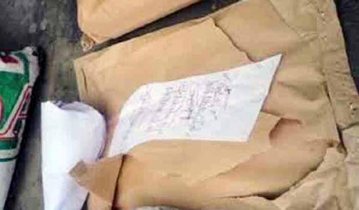 আজ বুধবার সকালে জেলা কালেক্টরেট ভবনে অবস্থিত বিআরটিএর সহকারী পরিচালক (ইঞ্জিন) বিলাস সরকারের কক্ষের সামনে কে বা কারা জেলা ত্রান ও পূর্নবাসন কর্মকর্তা আব্দুর রহমানের নামে প্রেরিত প্যাকেট রেখে যায়। প্যাকেটের মধ্যে কাফনের কাপড়, সাবান, আতর গোলাপ এবং অপর একটি প্যাকেটে লাল টেপ মোড়ানো বোমা সদৃশ্য বস্তু পাওয়া যায়।