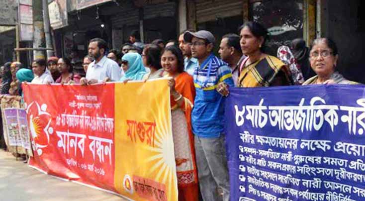 ৮ মার্চ আন্তজার্তিক নারী দিবস। এ উপলক্ষে আজ রবিবার মানববন্ধন কর্মসূচি পালন করেছে মাগুরার বিভিন্ন সরকারি-বেসরকারি প্রতিষ্ঠান সমূহ। সকাল ১১টায় শহরের এম আর রোডে এ মানববন্ধন কর্মসূচি পালিত হয়।