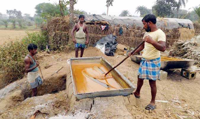 আকাল খেজুর রসের। বিলীন হয়ে গিয়েছে আসল নলেন গুড়। সুবাস মেশানো নলেন গুড় দিয়েই তৈরি হচ্ছে পিঠে-পুলি, পায়েস ও রসগোল্লা। খোঁজ নিয়ে এমনটিই জানা গেল মাগুরায়।